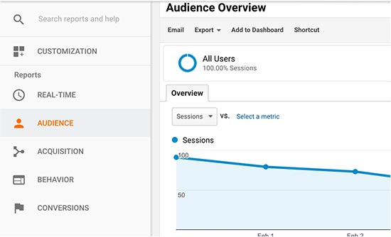 - Audience ستعرض علامة تبويب الجمهور تقارير تساعدك في فهم المستخدمين.