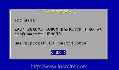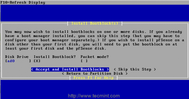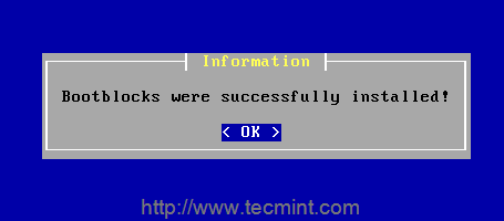 15. بمجرد إنشاء القسم بنجاح ، فقد حان الوقت لتثبيت bootblocks للحصول على تثبيت مشغل الإقلاع لـ pfsense.