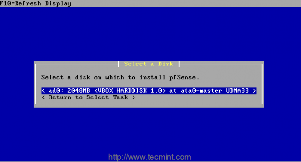 9. بعد ذلك ، حدد القرص الذي تريد تثبيت pfsense عليه.