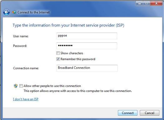 5. أدخل اسم المستخدم وكلمة المرور وانقر فوق Connect.