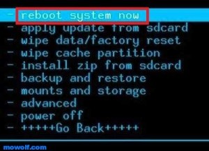 - 6 الان اختر Reboot System New وسيتم اعادة التشغيل للجهاز