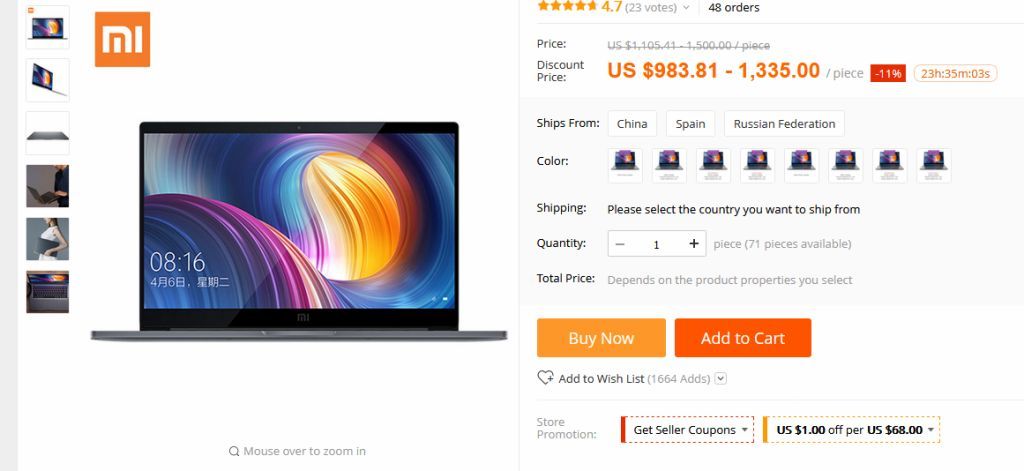 عند التوجة الى قسم اللابتوب Laptop ستظهر لنا منتجات كثيرة وامام كل منتج اسعارة واسعار الشحن له :