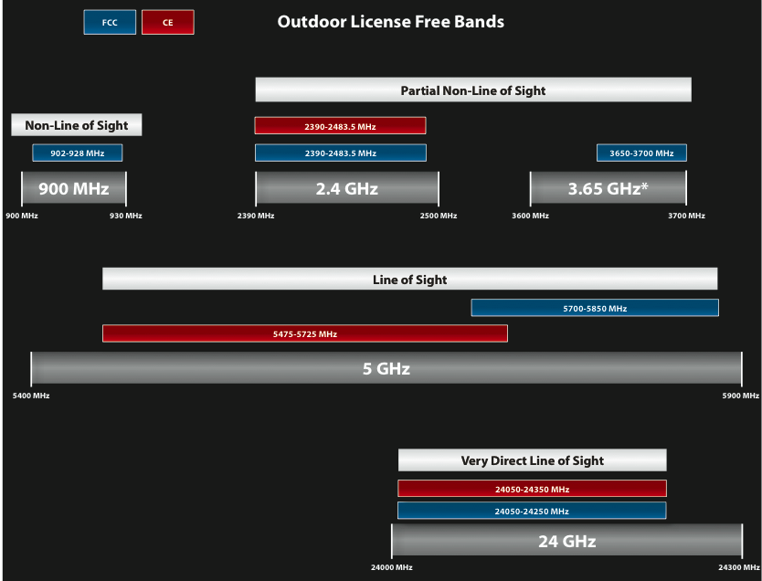 خالية من الضوضاء في معظم المناطق عرض النطاق الترددي 25 ميجاهرتز فقط في البلدان التي يمكن استخدام 3.65 جيجاهرتز يتطلب رخصة |