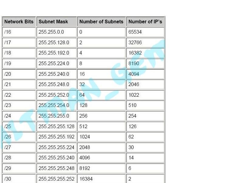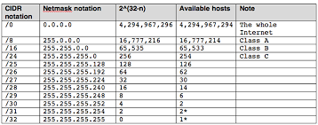 وادناه جدول توضح كل subnet mask وعدد ال ip الذي يتبعها :