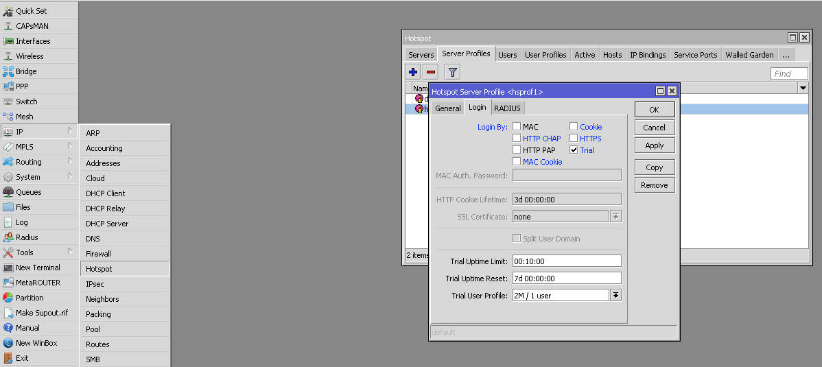 في Mikrotik ، يجب تفعيل خيار “trial” في ip-hotspot-server profile