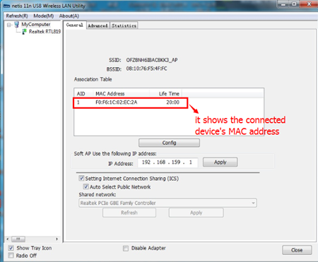 حدد Setting Internet Connection Sharing (ICS) , ثم سيقوم جهاز الكمبيوتر 1 الخاص بك بمشاركة الإنترنت من خلال وظيفة AP الخاصة بموجه netis.