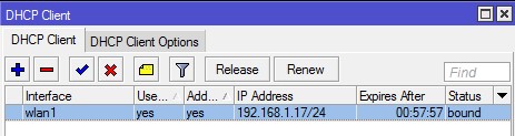 R هو علامة على أنه متصل بـ AP المستهدف. بعد ذلك ، سنطلب ip dhcp client من هدف ap. باستخدام DHCP CLIENT .