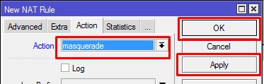 نظرًا لأن Masquerade هي امر action لتهيئة الـ NAT . حسنا الان اضغط Apply و OK.
