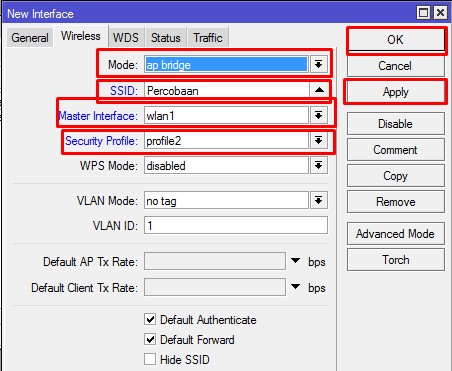 في مثل هذه الأوقات ، يمكنك الاستفادة من ما يسمى Vitice Access Point Mikrotik interface (VAP). من خلال VAP interface هذه ، يمكنك إضافة Wireless Interface إلى الـ Interface الرئيسية التي هي wlan 1.