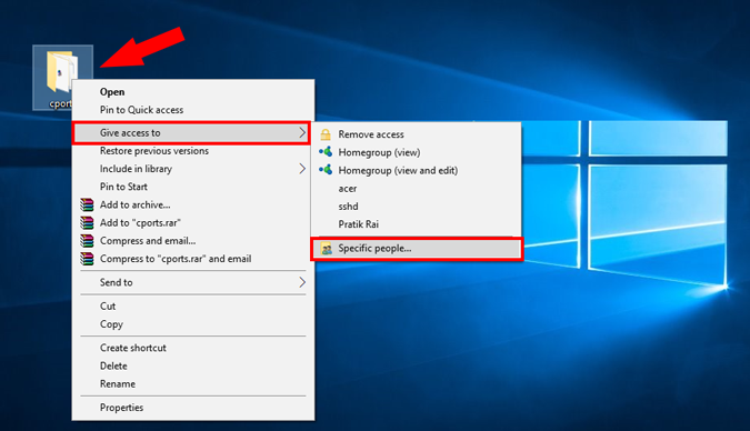 الآن،حان الوقت لإرسال الملفات من كمبيوتر إلى آخر.لذلك،تحتاج أولاً إلى مشاركة المجلد الذي تريد مشاركته على الشبكة.