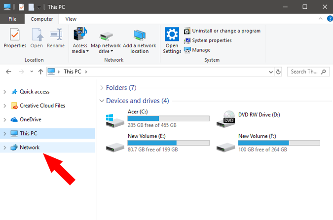 بعد ذلك ، افتح”My Computer”الخاص بك وانقر فوق علامة تبويب”الشبكة” في الجانب الأيسر من النافذة.