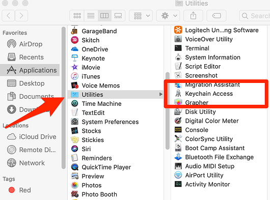 من هُناك ، يُمكنك النقر فوق Keychain Access .