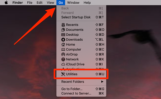 إذا كُنت تستخدم جهاز ماك ولم تكُن مُتأكداً من مكان العثور على مُفتاح أمان الشبكة ، فيُمكنك الحصول عليه من خلال الذهاب إلى قائمة Finder ، ثم النقر فوق Go ثم Utilities (الأدوات المساعدة) .