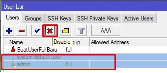 ولإزالة وتعطيل User Default يرجى إنشاء أول مستخدمين لديهم وصول كامل (group Full) . ولتنفيذ ذلك أذهب System -> Users