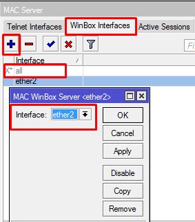 يمكنك القيام بذلك بتغيير MAC-Winbox إلى Ether2 وتعطيل “الكل all”