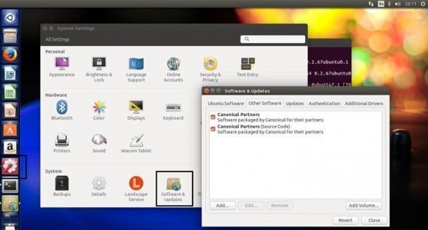 من أجل إنجاز هذه الخطوة ، افتح قائمة إعدادات نظام Launcher -> System Settings -> Software and Updates وأفحص جميع مستودعات Ubuntu Software and Other Software (Canonical Partners).