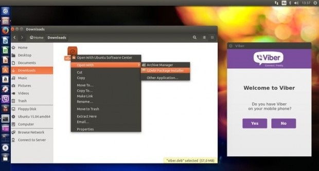 لتثبيت تطبيق فايبر على أوبونتو ، قم بزيارة صفحة فايبر الرسمية ، قم بتنزيل حزمة Debian محليًا وقم بتثبيت تطبيق viber.deb باستخدام مدير حزم Gdebi (النقر بزر الفأرة الايمن -> اختر فتح باستخدام -> GDebi Package Installer).