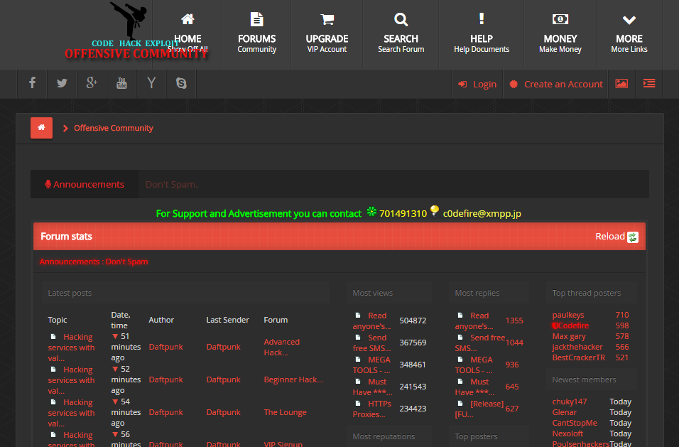 وعند الدخول على هذا الموقع ستجده عباره عن منتدى هاكينج مشهور وله شعبيه ويوفر مجموعه من المواضيع والكثير…