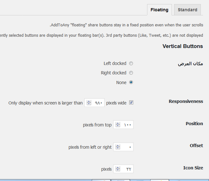 3. هذا الخيار مهمتة التحكم في موقع اضهار ايقونات المشاركة للمقالات سواء :