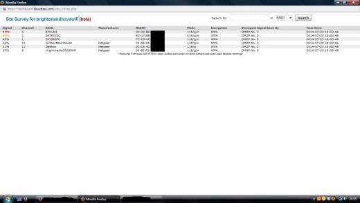 ميزة مفيدة أخرى هي مسح الموقع. تقوم كل عقدة في الشبكة بالبحث عن شبكات WiFi المجاورة الأخرى وتعطيك اسم كل شبكة / SSID وعنوان MAC والقناة. قد يكون هذا مفيدًا جدًا إذا كنت تريد العثور على قناة أقل ازدحامًا لشبكتك لتحسين الأداء.