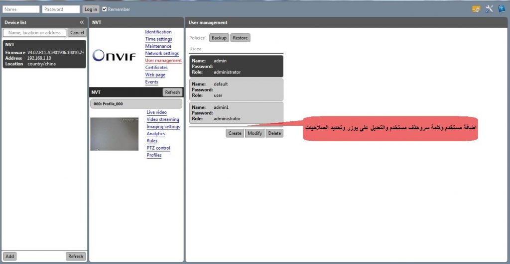 *ملاحظة* البرنامج يخص الكاميرات التي تدعم خاصية ONVIF و يمكن فتح رابط جميع أنواع IP CAMERA عن طريق متصفح انترنت اكسبلورر مع تعديل اعدادت امان الانترنت