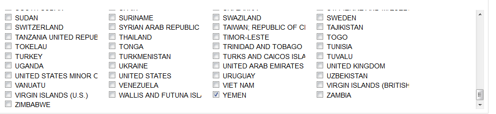 /ip firewall address-list add address=5.100.160.0/21 comment="YEMEN" list=CountryIPBlocks add address=31.31.176.0/20 comment="YEMEN" list=CountryIPBlocks add address=46.35.64.0/19 comment="YEMEN" list=CountryIPBlocks add address=78.137.64.0/19 comment="YEMEN" list=CountryIPBlocks add address=81.91.24.0/21 comment="YEMEN" list=CountryIPBlocks add address=82.114.160.0/19 comment="YEMEN" list=CountryIPBlocks add address=89.189.64.0/19 comment="YEMEN" list=CountryIPBlocks add address=109.74.32.0/20 comment="YEMEN" list=CountryIPBlocks add address=109.200.160.0/19 comment="YEMEN" list=CountryIPBlocks add address=131.117.160.0/21 comment="YEMEN" list=CountryIPBlocks add address=185.11.8.0/22 comment="YEMEN" list=CountryIPBlocks add address=185.71.132.0/22 comment="YEMEN" list=CountryIPBlocks add address=185.80.44.0/22 comment="YEMEN" list=CountryIPBlocks add address=185.80.140.0/22 comment="YEMEN" list=CountryIPBlocks add address=185.112.200.0/22 comment="YEMEN" list=CountryIPBlocks add address=195.94.0.0/19 comment="YEMEN" list=CountryIPBlocks