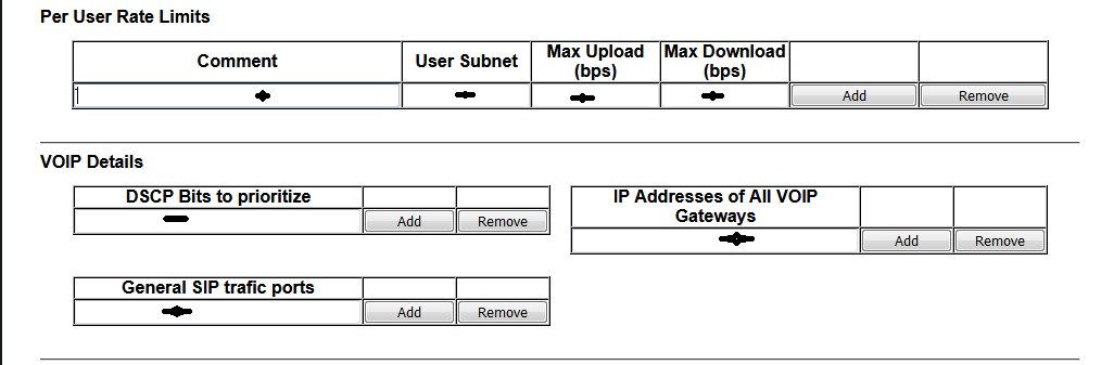بالصورة ادناة ( حدود معدل المستخدم ) قم باضافة القيم المطلوبة في مربعاتها واستخد الزر Add للأضافة و Remove للحذف: