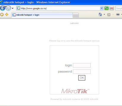 تم تكوين HOSTPOT الأساسي الآن. الآن انتقل إلى جهاز الكمبيوتر العميل ، عند تمهيد ، فإنه سيتم تلقائيا تلقي عنوان ip من خادم DHCP ، افتح المتصفح وحاول فتح أي موقع على شبكة الإنترنت ، سترى صفحة تسجيل الدخول هوت سبوت تطلب الحصول على بيانات الاعتماد.