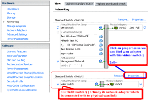 لتقصير القصة أستخدم فقط واجهتين ل mikrotik ، LAN و WAN. في هذا المثال (نسخة مختصرة) يكون ESXi لهما واجهتين متصلتين ، أحدهما بـ switch تبديل مستخدم الشبكة المحلية وواجهة أخرى متصلة بالـ WAN (physically)
