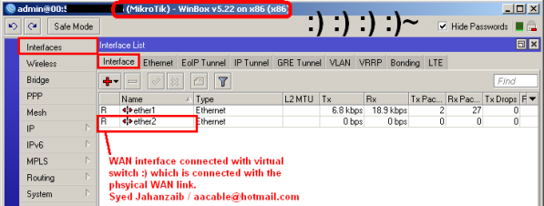 بعد الانتهاء من التثبيت ، اتصل ب mikrotik عن طريق الـ WINBOX وابحث عن interfaces