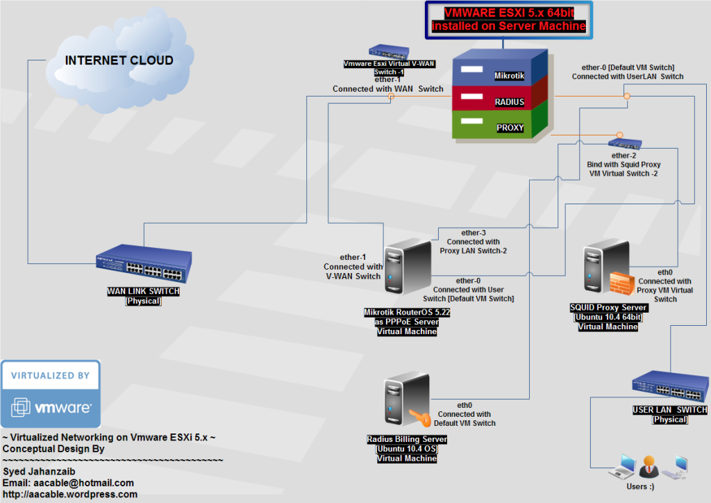 2) Mikrotik Router-OS 5.22 [1GB Ram +100GB virtual HDD assigned to this VM] 3) Ubuntu 10.4 for SQUID Proxy (2.7) [8GB Ram +500GB virtual HDD assigned to this VM] 4) Ubuntu 10.4 for Radius Manager Billing System [4GB Ram +200GB virtual HDDassigned to this VM]