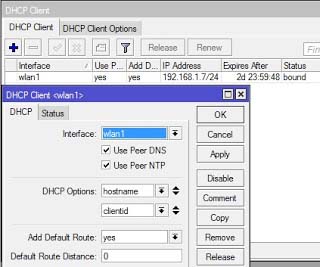 / ip firewall nat add action = masquerade chain = srcnat out-interface = wlan1