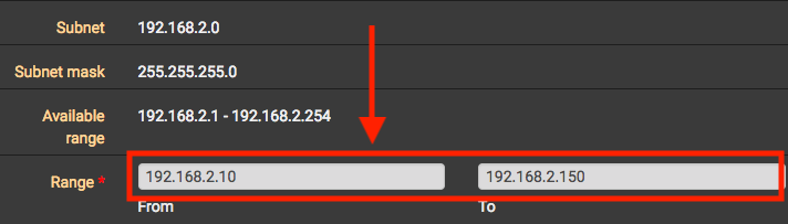 يستخدم المثال DHCP النطاق 192.168.2.10 – 192.168.2.150.