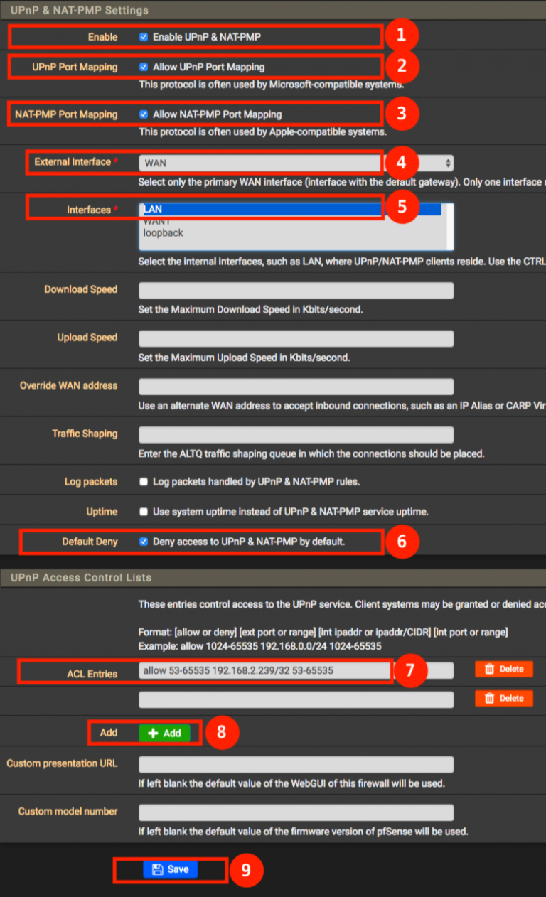 الخطوة 2: تمكين UPnP و NAT-PMP في pfSense