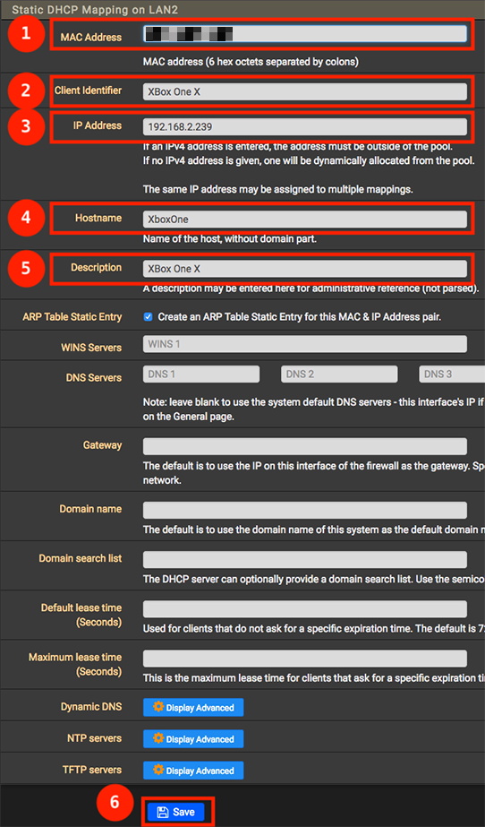 إما أن تقوم بتعيين عنوان IP ثابت لجهاز XBox One الخاص بك أو تقوم بإعادة حجز عنوان IP الخاص بك XBox One في DHCP لإعداد pfSense الخاص بك.