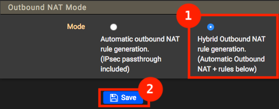 أولاً ، نحتاج إلى تعيين NAT الصادرة إلى Hybrid: