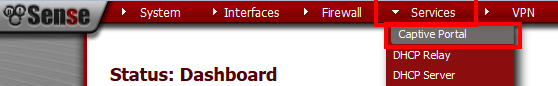 2- انتقل عبر قائمة Services في الجزء العلوي إلى Captive Portal