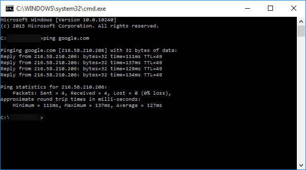 - time=xxx ms يُمثل الزمن الذي قضته حزمة البيانات في رحلة الذهاب و الإياب.