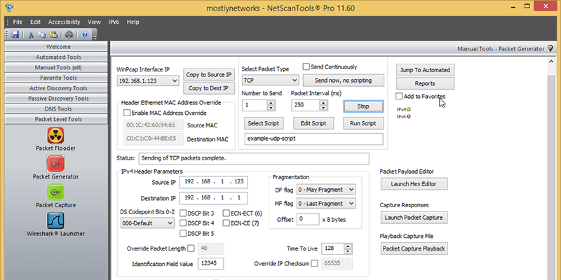 أحد استخدامات هذه الأداة هو مسح عناوين IP والمنافذ لمعرفة ما هو موجود على الشبكة.