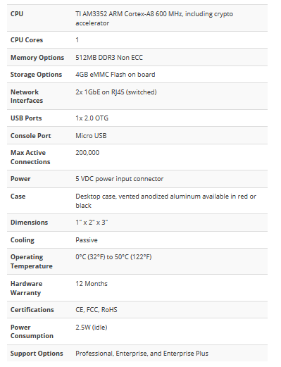 يعد جهاز Netgate® SG-1000 microFirewall جهازًا فائق الفعالية من حيث التكلفة وحديثًا يعمل بنظام ARM® ومقبس أمان pfSense®. يأتي جهاز SG-1000 مزودًا بمنافذ إيثرنت ثنائية 1 جيجابت في الثانية ، مما يتيح أقصى سعة نقل تتجاوز 100 ميغابت في الثانية [1]. يعمل ARM Cortex®-A8 في ذاكرة الوصول العشوائي AM3552 وذاكرة DDR3L TI على تسهيل استهلاك الطاقة المنخفضة مع الحفاظ على الأداء.