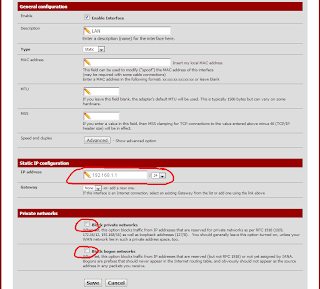 بالنسبة إلى LAN ، عيّن عنوان IP على 192.168.1.1/24 ولاحظ أنه: في هذه الحالة ، لا تضبط أي gateway