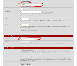 تكوين واجهات الشبكة. انتقل إلى Interfaces> انقر فوق WAN وقم بتغيير اسم WAN إلى WAN1 ، ثم قم بتعيين عنوان IP إلى 172.16.1.1/24