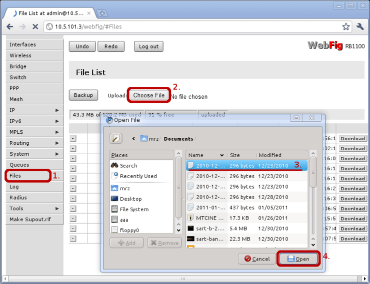 يسمح Webfig بتحميل الملفات مباشرة إلى الراوتر ، دون استخدام خدمات FTP.