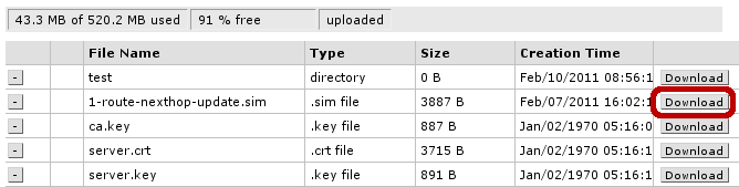 يمكن أيضًا تنزيل الملفات بسهولة من جهاز التوجيه ، من خلال النقر على زر التنزيل على الجانب الأيسر من إدخال الملف.