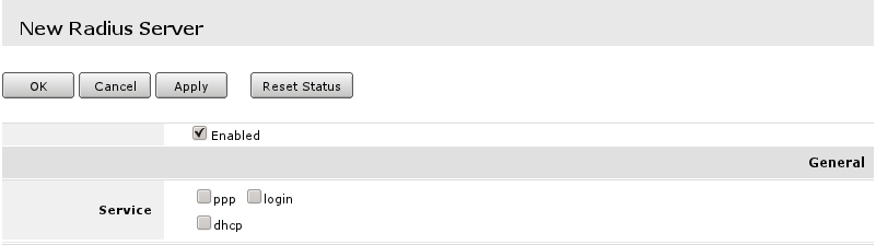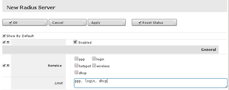 تعيين الحقول هي وسيطة تتكون من مجموعة من مربعات الاختيار ، على سبيل المثال ، إعداد السياسات لمجموعات المستخدمين ، “خدمة” RADIUS
