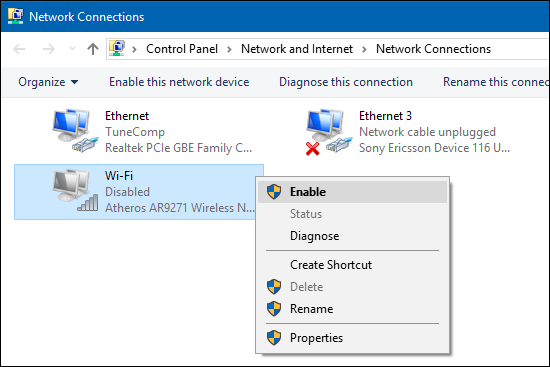Wi-Fi لايعمل على الكمبيوتر المحمول المثبت علية نظام التشغيل Windows 10