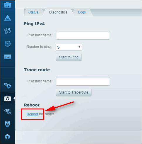والطريقة السهلة هي اعادة تشغيل الراوتر باستخدام زر Power (الطاقة) أو فصلها عن مأخذ التيار الكهربائي. هناك طريقة أخرى هي تسجيل الدخول إلى واجهة الاعدادات وتحديد إعادة التمهيد: إعادة تشغيل جهاز الراوتر عن بُعد