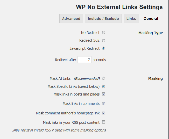 Mask All Links   (Recommended) اعادة التوجية لجميع الروابط بما فيها روابط الموقع الداخلية وهذا لاينصح به لانه يتسبب في ازعاج الزائر